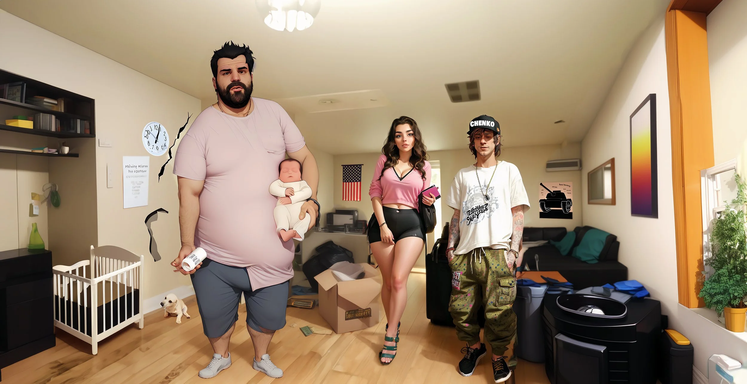 Cody is Jordan and Janeé’s 9 month old baby. He is currently sleeping in a small cardboard box that Jordan fashioned as a crib for him in his room, right next to a wall filled with FaceFuka posters. Cody is currently experiencing a slight cold, though, getting sick with a cough and running nose.